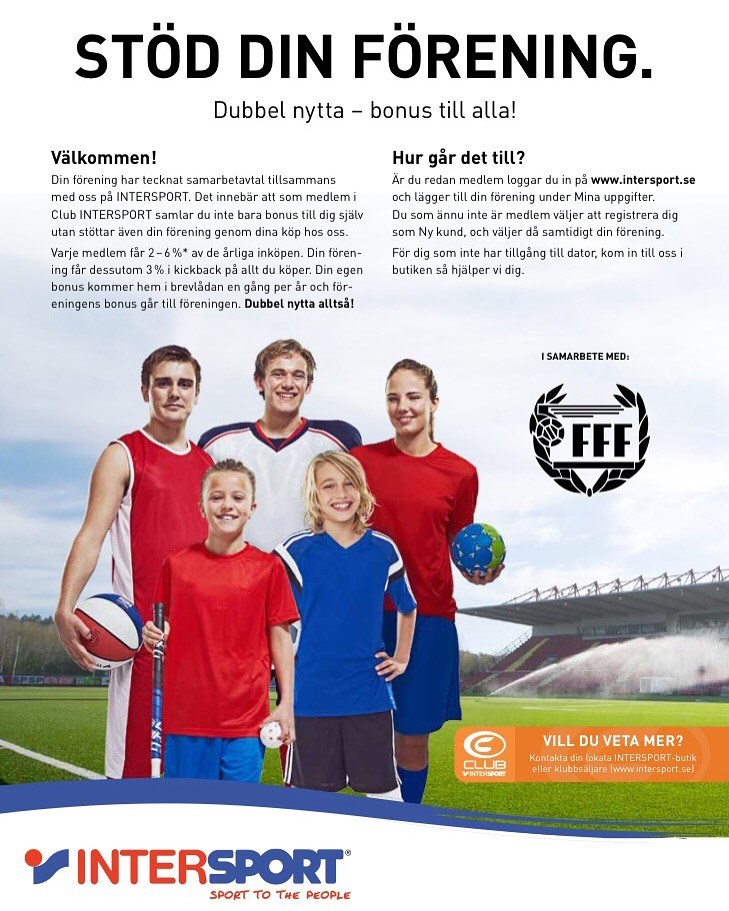 Nu kan ni vara med och vill stödja Forsby, om du kopplar Forsby förening till ditt Intersport medlemskap kommer Intersport att sponsra Forsby med ett viss antal procent!
