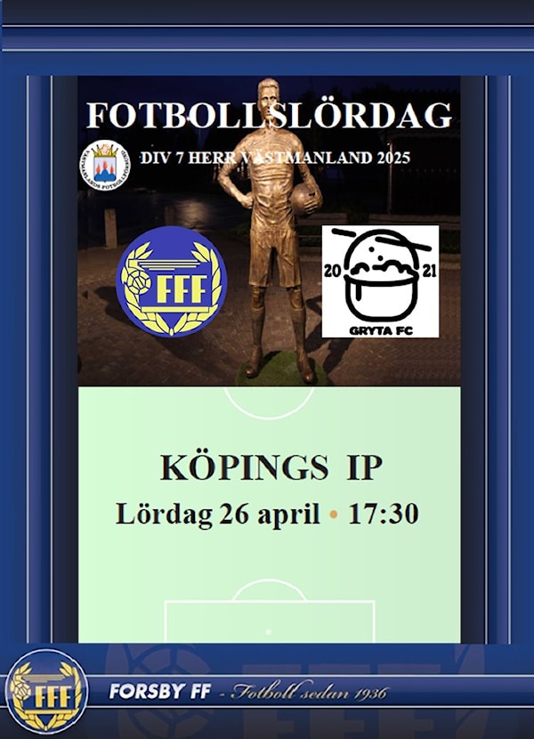 Idag 26 april kl.17:30 gör Forsby FF Herr entré i den antika Köpings IP.
